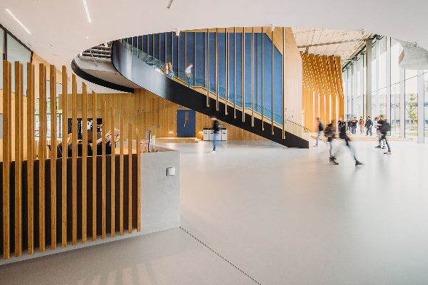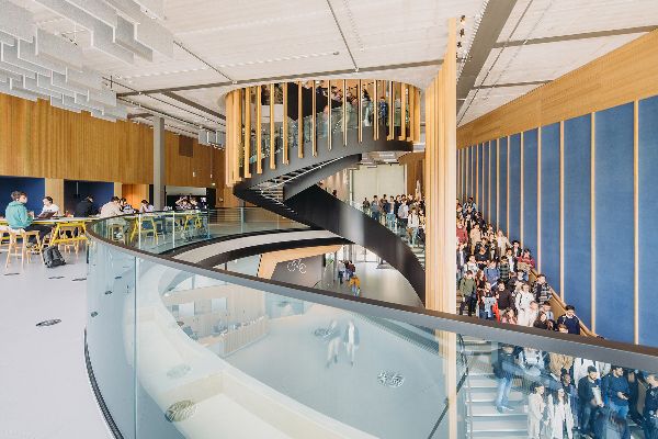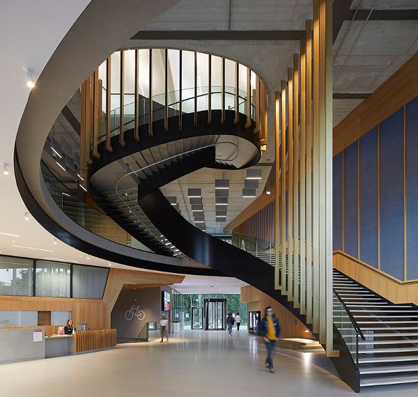 宏偉的螺旋形樓梯占據室內的中心位置,促進了建筑中的交通,有助于用戶的健康。按照建筑師的意圖,該設計支持“一切皆有可能”的當代文化。非常重視中間的空間,以及物理運動。該建筑為思考、靈感和交流提供了各種平臺。