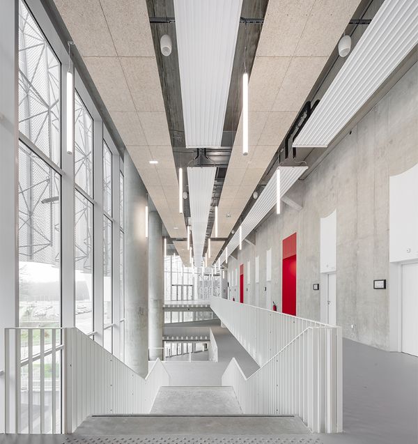 在室內空間,混凝土結構裸露在外,沒有添加任何材料。最少的資源消耗創造了寧靜而堅實的風景,與活動的氣氛相得益彰。 標牌干預直接應用于混凝土墻并融入建筑。為了應對氣候問題,該項目側重于實施多功能的高效建筑計劃,以延長設施使用的強度和時間段。 擁有 10,000 個座位的競技場采用模塊化設計,可適應多項文化和體育賽事。會展中心作為場館和會展中心的直接延續,根據功能需求,將全部或部分空間組合成多種場景。