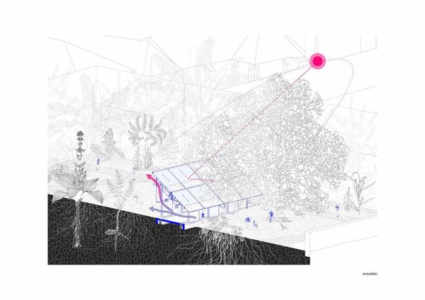 地下熱泵、遮陽和供暖系統調節建筑物的溫度,在夏季提供自然冷卻和通風,在冬季提供高效供暖。這種方法反映了溫室的調節特性,確保能源效率并減少對環境的影響。