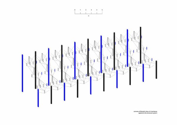 該設計的一個重要美學和功能元素是重新設計的支撐鋼屋頂結構,其靈感來自孟德爾的三大遺傳定律。鋼框架,類似于節點和分支,與孟德爾定律直接對話,特別是世襲隔離的概念。通過玻璃屋頂的透明度,該結構在功能和美學上都體現了孟德爾對現代科學的寶貴貢獻。