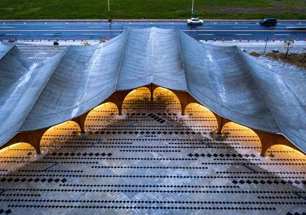 BACC的“無限大地”分為“地面交流”和“地面感受”兩部分,深入探討了當(dāng)代建筑與大地之間的聯(lián)系。在第一部分“地面交流”中,建筑師采用現(xiàn)代建筑技術(shù)來構(gòu)筑獨特的場地景觀,強(qiáng)調(diào)地面的特征。例如,49建筑師有限公司的Velaa Sindhorn Village Langsuan(2019年)和Singha D'luck電影劇場(2017年)等高架建筑為公眾提供了交流空間,并受到光線和季風(fēng)等自然元素的影響。Behet Bondzio Lin Architekten的永恒之山骨灰龕(2022年)和屋頂之屋(2016年)回應(yīng)了臺灣的熱帶氣候,創(chuàng)造出傳達(dá)神圣感的設(shè)計。