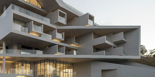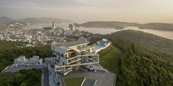由IDMM建筑事務(wù)所設(shè)計的“港口堡壘”位于韓國多爾山島白草吉的高原上。該建筑位于海拔100米的高山上,占地面積9936平方米,從自然景觀中脫穎而出。向西北方眺望,麗水市優(yōu)雅地環(huán)繞著鐘吾山、瑪拉伊山和風(fēng)景優(yōu)美的座山公園,勾勒出一幅如詩如畫的海岸全景圖。西南方向的城市天際線與瀨久治村和南海形成迷人的對比。