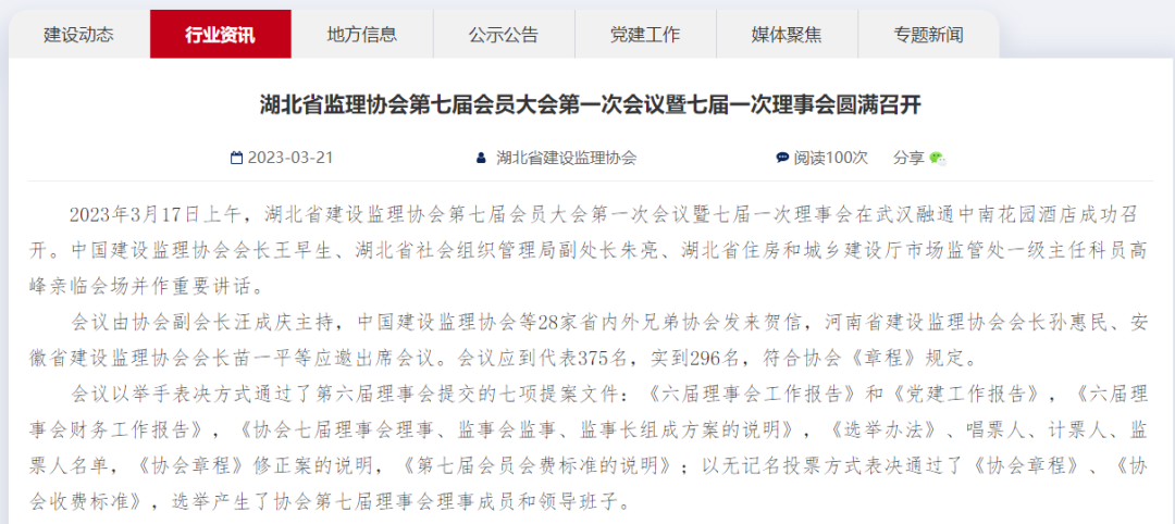 3月17日上午,湖北省建設監理協會召開了第七屆會員大會第一次會議暨七屆一次理事會,中國監理協會王早生會長應邀參會。會議通過不記名投票的方式選舉出了第七屆理事會理事成員單位,省建筑設計院·百年監理公司成功當選為湖北省建設監理協會理事單位。