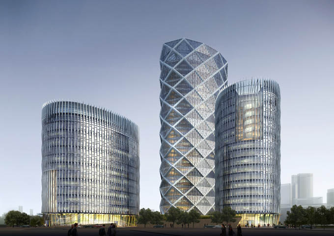 整個中心商務區為一個精致的商業整體。我院在設計時充分考慮了個單體間的呼應,做到細節統一,同時有體現了各建筑的特點,利用不同的材料和幕墻的先進技術,使本工程在視覺效果、使用功能、結構安全性、幕墻物理性能等都達到建筑設計要求,傾力于將它設計打造成為高品質的幕墻精品力作及地標性建筑。